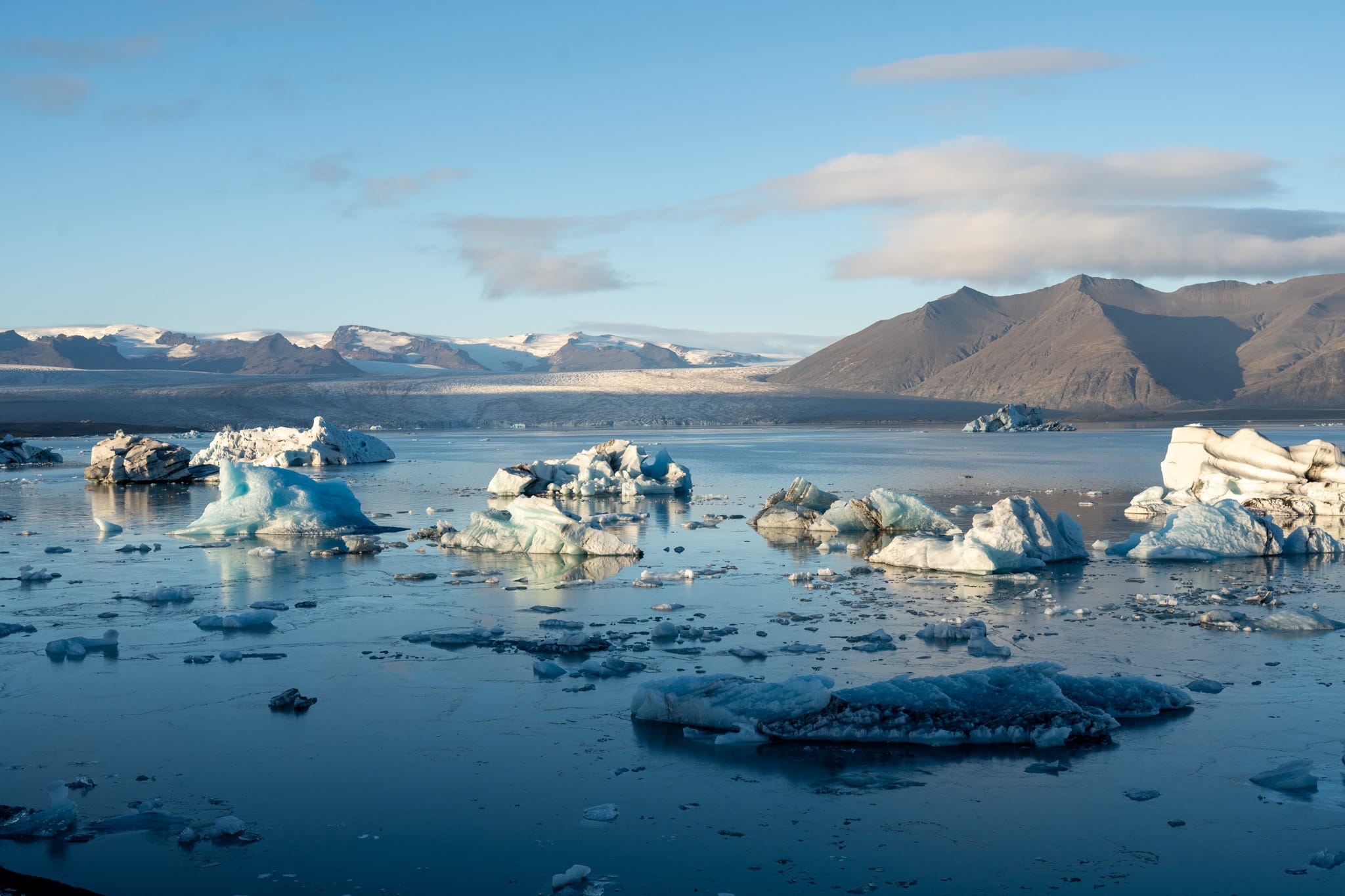 Die Gletscherlagune entsteht durch das Abschmelzen des Vatnajökull, Europas größtem Gletscher. Von dort lösen sich Eisbrocken, treiben durch die Lagune und gelangen über einen kurzen Abfluss ins Meer. Ein Teil des Eises wird später wieder angespült – genau hier liegt der Diamond Beach, bekannt für glitzerndes Eis auf schwarzem Vulkansand.
