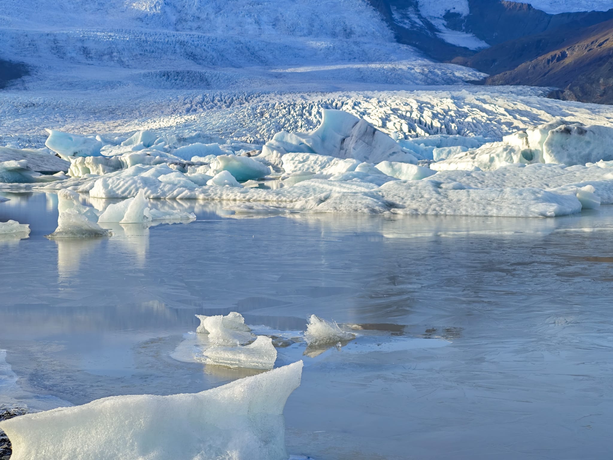 Ganz in der Nähe von Jökulsárlón liegt mit der Fjallsárlón eine weitere Gletscherlagune, die oft als Ergänzung besucht wird. Sie ist kleiner, kompakter und liegt deutlich näher an der Gletscherzunge, wodurch der Blick auf Eis und Gletscher besonders unmittelbar wirkt.