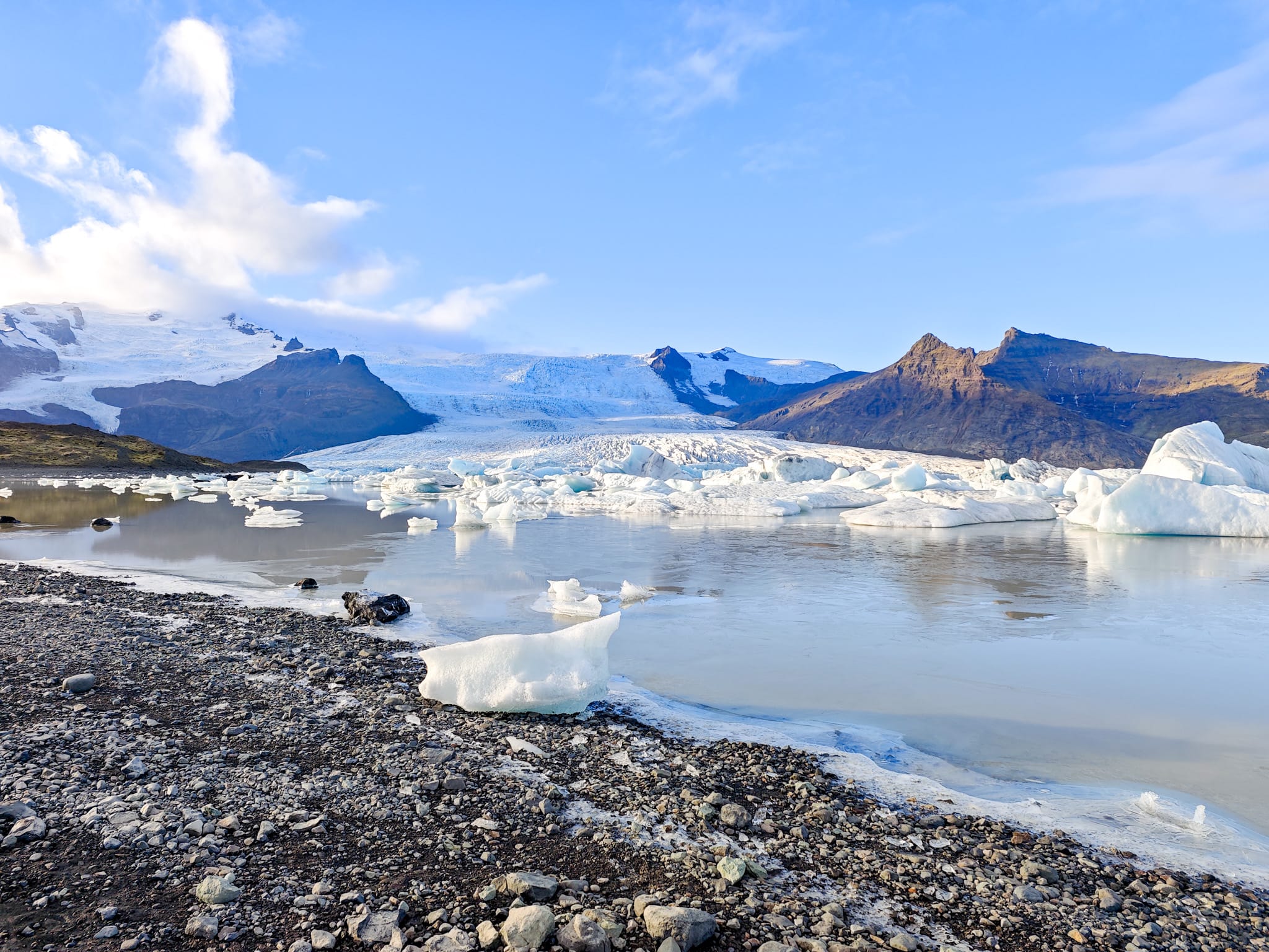 Ein kurzer Rundgang direkt am Parkplatz vermittelt bereits einen guten Eindruck, doch die Gletscherlagune erschließt sich besser, wenn man sich etwas vom zentralen Bereich entfernt. Entlang des Ufers ergeben sich immer wieder neue Perspektiven auf Eisberge, Wasserflächen und den Gletscher im Hintergrund.