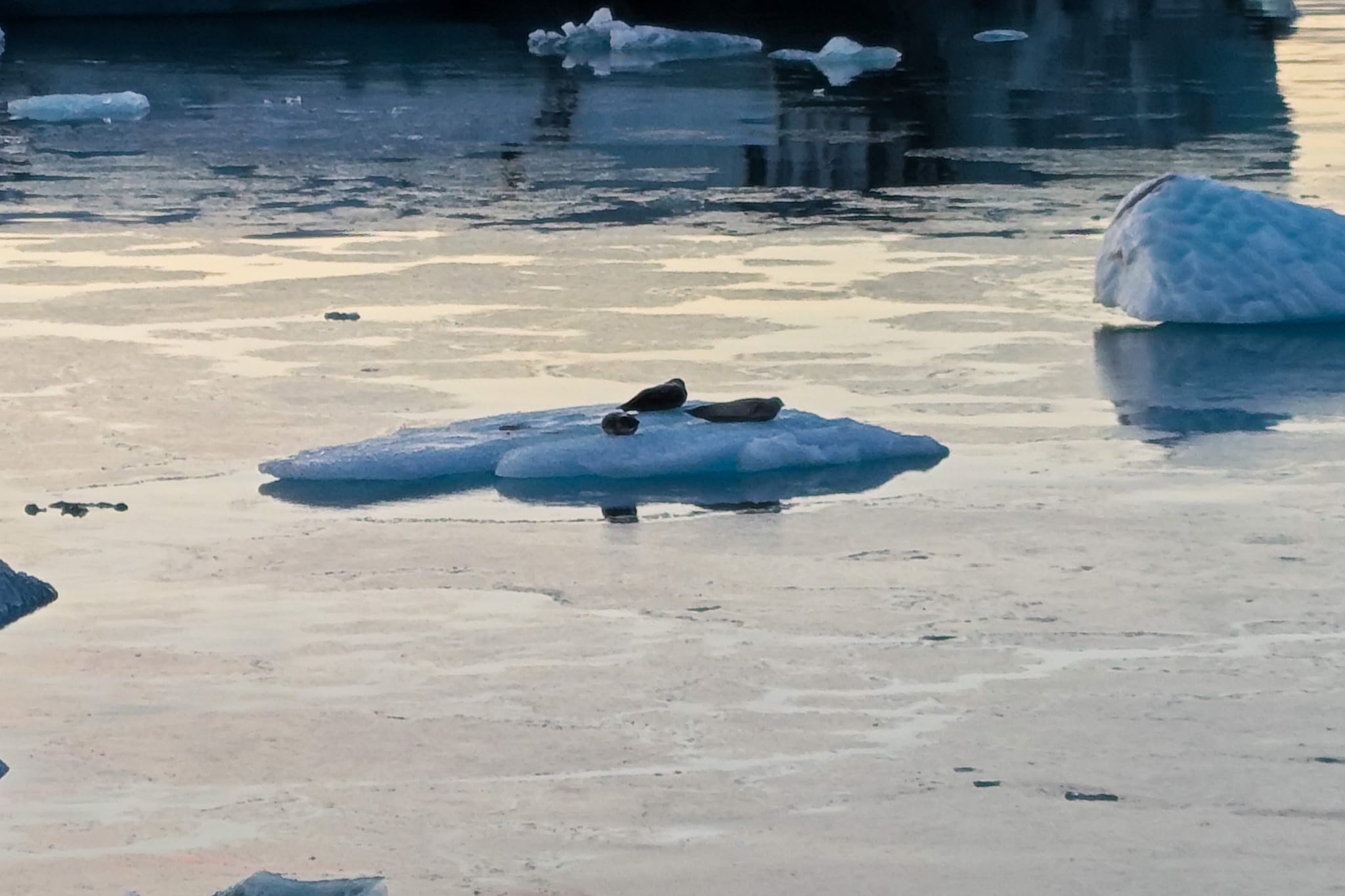 Entlang des Weges treiben Eisberge teils nah am Ufer, und mit etwas Glück lassen sich Robben zwischen den Eisbrocken beobachten. Besonders bei ruhigem Wetter zeigen sie sich häufiger im Wasser oder auf einem Eisberg. Entlang der Lagune lassen sich immer wieder kleinere Eisbrocken entdecken, die wie kleine Eisskulpturen am Ufer liegen. Je nach Licht und Wasserstand schimmern sie unterschiedlich und verändern sich ständig.