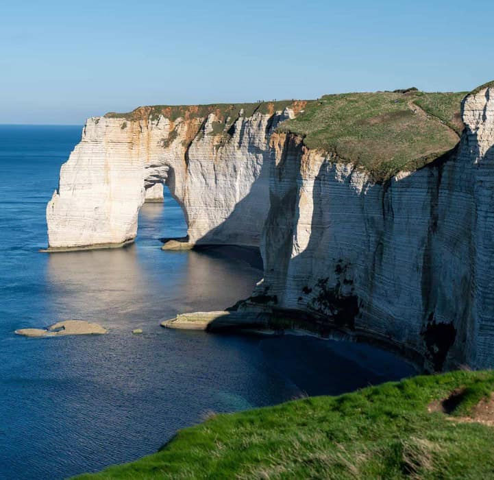 Die Alabasterküste erstreckt sich auf einer Länge von etwa 120 Kilometern entlang des Ärmelkanals. Ihre markanten weißen Kreideklippen, die durch Feuersteinadern durchzogen sind, ziehen Besucher aus aller Welt an. Étretat ist ein besonderer Höhepunkt dieser Küstenlandschaft und ideal für eine Rundwanderung, die sowohl atemberaubende Aussichten als auch faszinierende Einblicke in die Geologie und Geschichte der Region bietet.