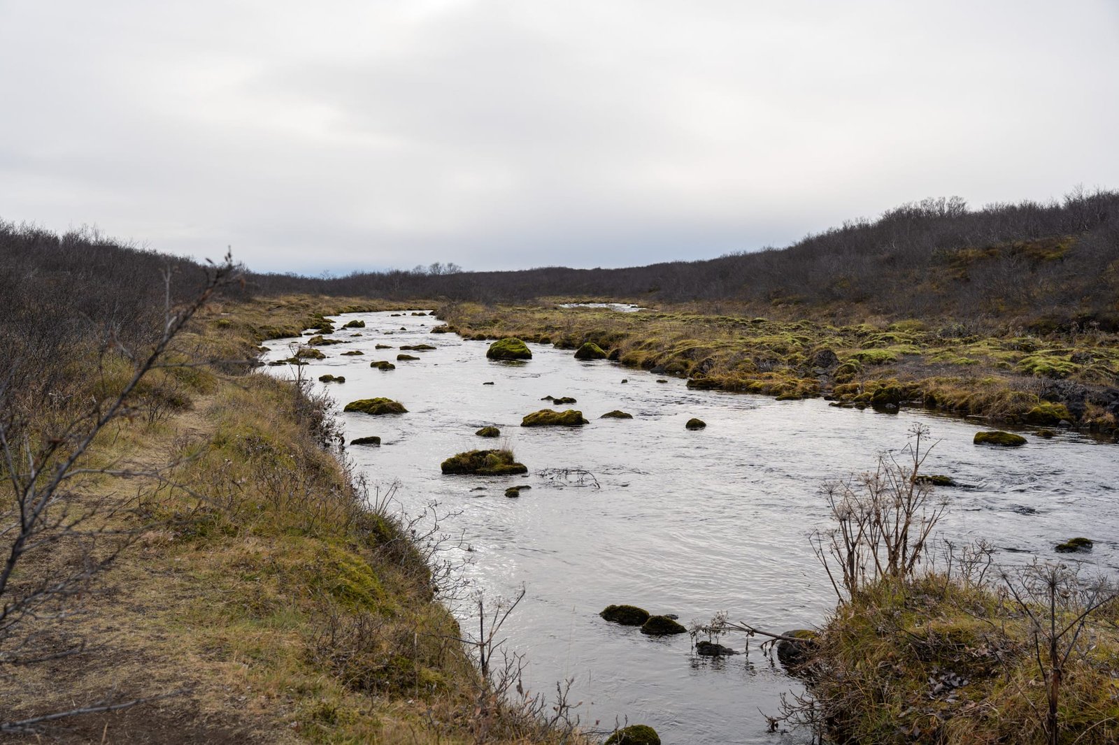 Wer mehr Zeit hat und es ruhiger mag, sollte den Brúará Trail einplanen. Dieser startet an einem kostenlosen Wanderparkplatz (Link zu Google Maps) und folgt dem Fluss Brúará über etwa 3 Kilometer pro Richtung. Entlang des Weges kommst du an mehreren kleineren, aber sehr sehenswerten Wasserfällen vorbei. Hier sind deutlich weniger Besucher unterwegs als am direkten Zugang zum Brúarfoss.