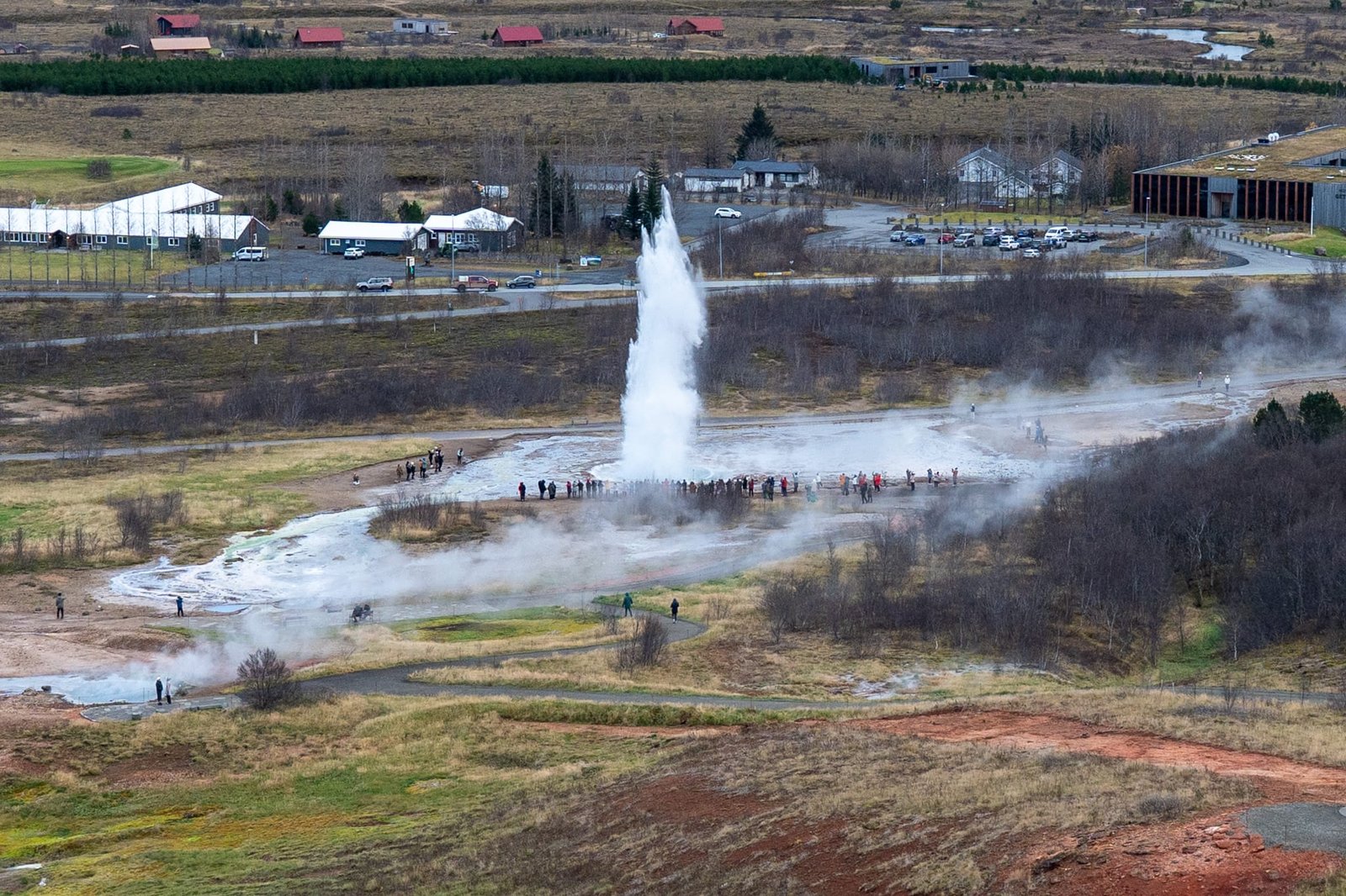Die Wege im Geothermalgebiet sind gut angelegt und führen an verschiedenen heissen Quellen, blubbernden Löchern und Dampfaustritten vorbei. Für einen Rundgang solltest du mindestens 1-2 Stunden vorsehen, je nachdem, wie lange du beim Strokkur verweilst.