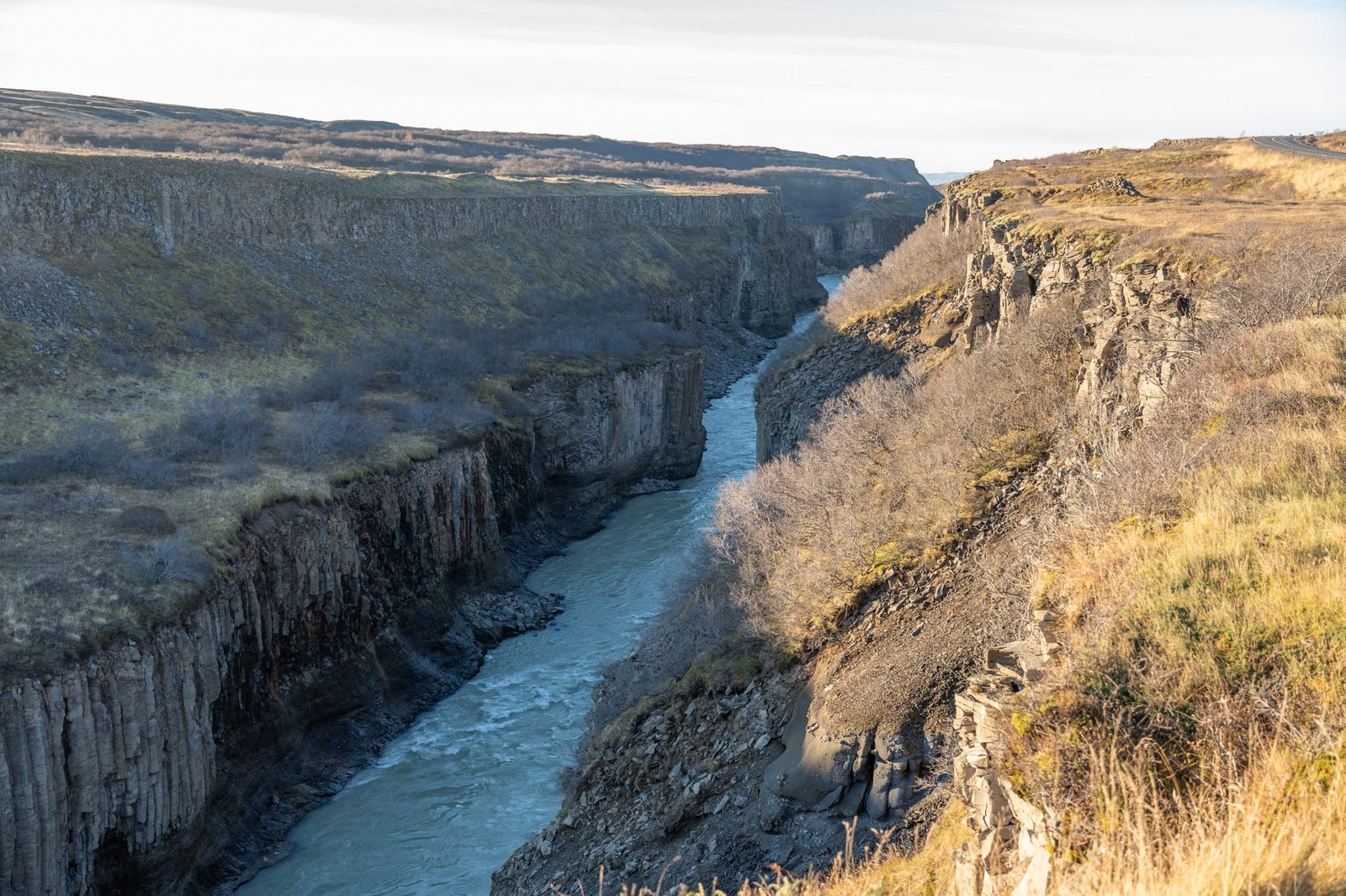 Der offizielle Parkplatz liegt nur etwa 10 Gehminuten vom Wasserfall entfernt. Der kurze Weg ist gut ausgebaut und führt direkt zum Aussichtspunkt. Dadurch eignet sich der Brúarfoss auch gut als schneller Stopp zwischen zwei größeren Highlights. Das Parken ist kostenpflichtig und erfolgt über Parka.