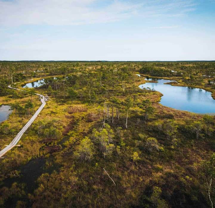 Eines der unvergesslichsten Erlebnisse im Ķemeri Nationalpark ist der Holzsteg, der sich durch das Große Ķemeri-Moor zieht. Der gut ausgebaute Rundweg führt über etwa 3,4 Kilometer durch die weite Moorlandschaft. Die Holzplanken ermöglichen es den Besuchern, die empfindliche Mooroberfläche zu betreten, ohne sie zu beschädigen. Diese Stege sind der ideale Weg, um die geheimnisvolle Atmosphäre des Moors zu erleben, besonders frühmorgens oder in den Abendstunden, wenn der Nebel über dem Wasser schwebt.