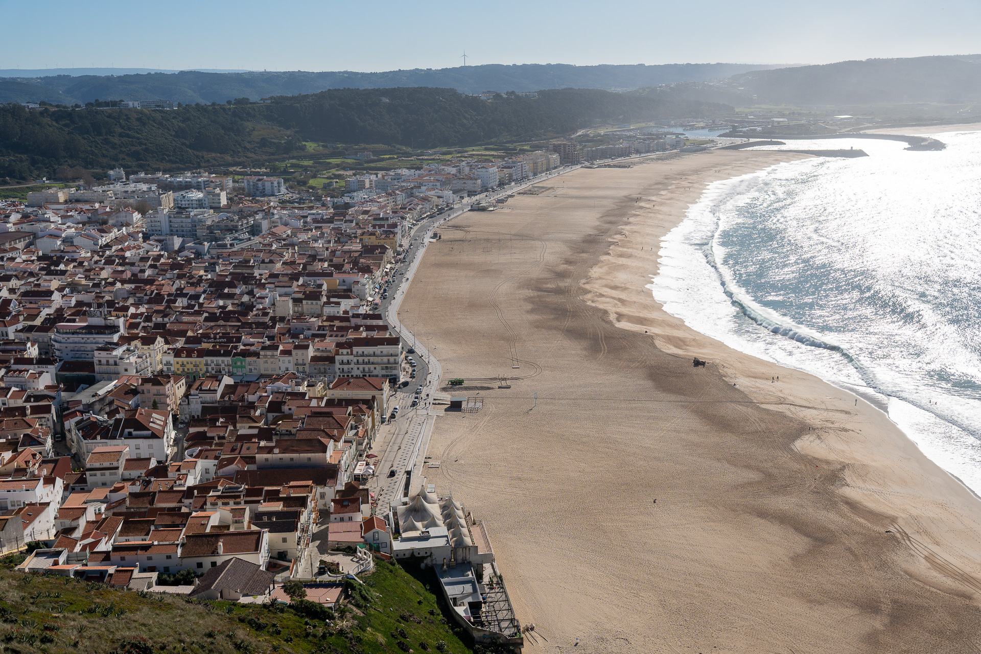 Für eine Reise mit dem Camper ist Nazaré ein guter Stopp an der Atlantikküste. Es gibt einen offiziellen, kostenlosen Wohnmobil-Stellplatz [Link zu Google Maps] etwas außerhalb des Zentrums. Von dort bist du zu Fuß schnell am Nordstrand Praia do Norte, wo im Winter die berühmten Monsterwellen zu sehen sind.