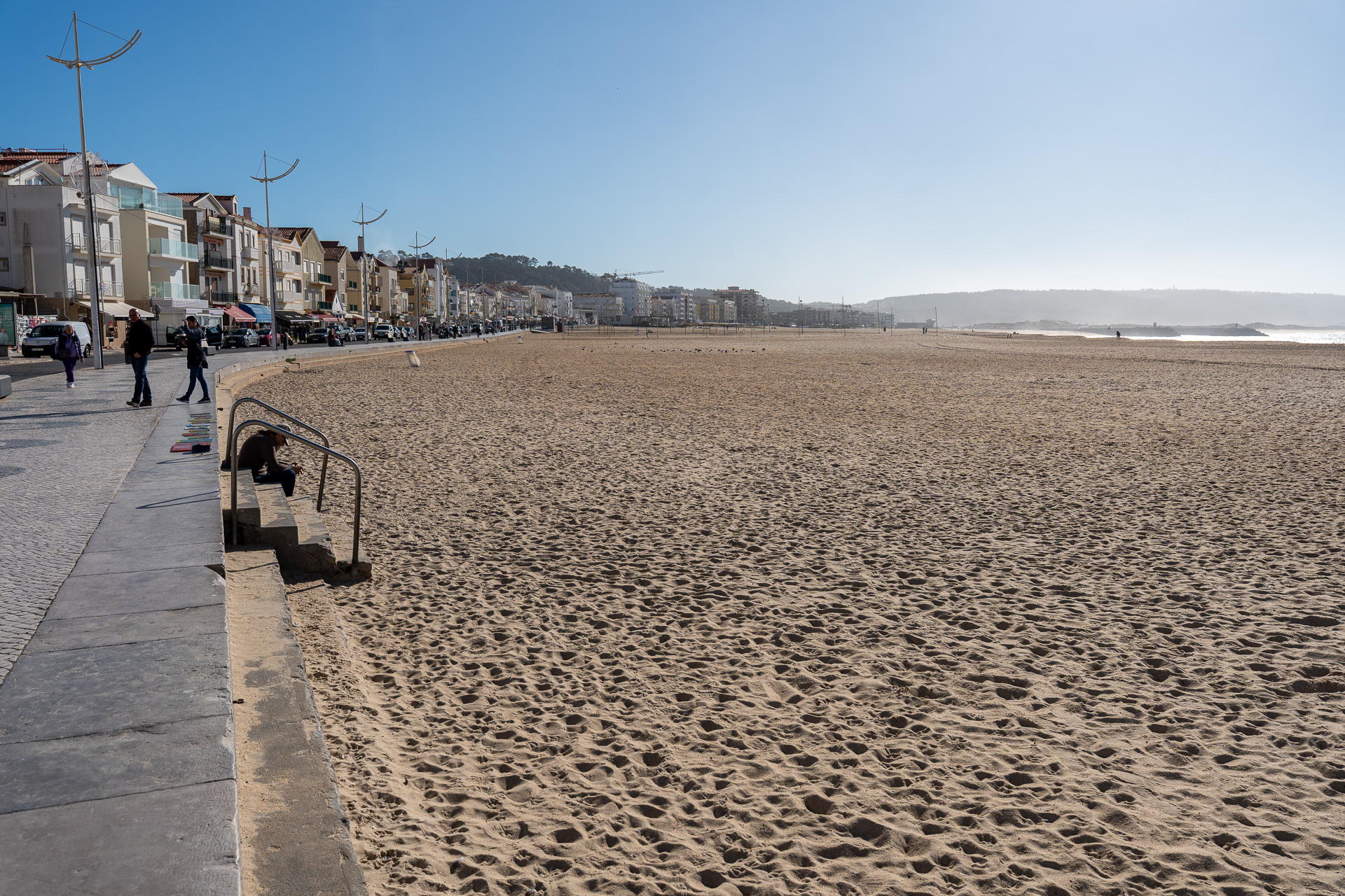 Der Hauptstrand Praia da Nazaré liegt direkt an der Stadt und ist ein breiter Sandstrand, der im Sommer ideal zum Baden und Sonnen ist. Entlang der Strandpromenade findest du viele Restaurants, Cafés und kleine Geschäfte. Hier spielt sich das Leben von Nazaré ab – entspannt, lebendig und immer mit Blick auf den Atlantik.