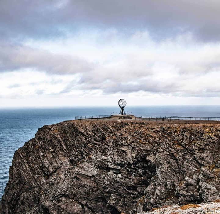 Ein Highlight ist die ikonische Globus-Skulptur, die symbolisch den nördlichsten Punkt Europas markiert. Diese Skulptur, die sich dramatisch gegen den Himmel abzeichnet, ist ein beliebtes Fotomotiv und das Wahrzeichen des Nordkaps. Hier stehen Reisende buchstäblich am „Ende Europas“ und können das Gefühl erleben, am Rande der Welt zu sein. Die Globus-Skulptur dient nicht nur als Erinnerung an die geographische Lage, sondern als Symbol für die Erkundung und das Abenteuer, das mit diesem mythischen Ort verbunden ist.