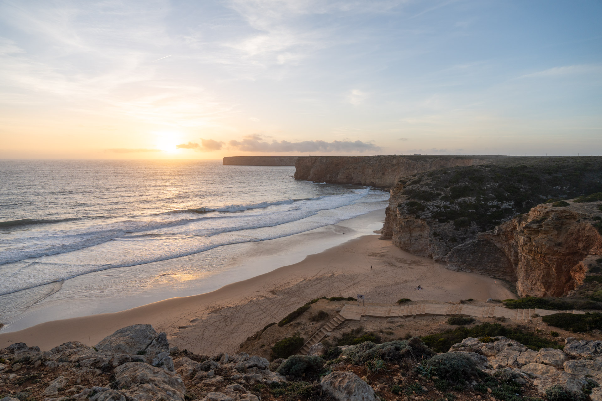 Ein weiteres Highlight ist die Praia do Beliche, die zwischen hohen Felsen eingebettet liegt. Über eine Treppe gelangst du hinunter zum Strand, der windgeschützter ist als viele andere in der Region. Gerade wegen der beeindruckenden Steilklippen zählt er zu den schönsten Stränden der Algarve.