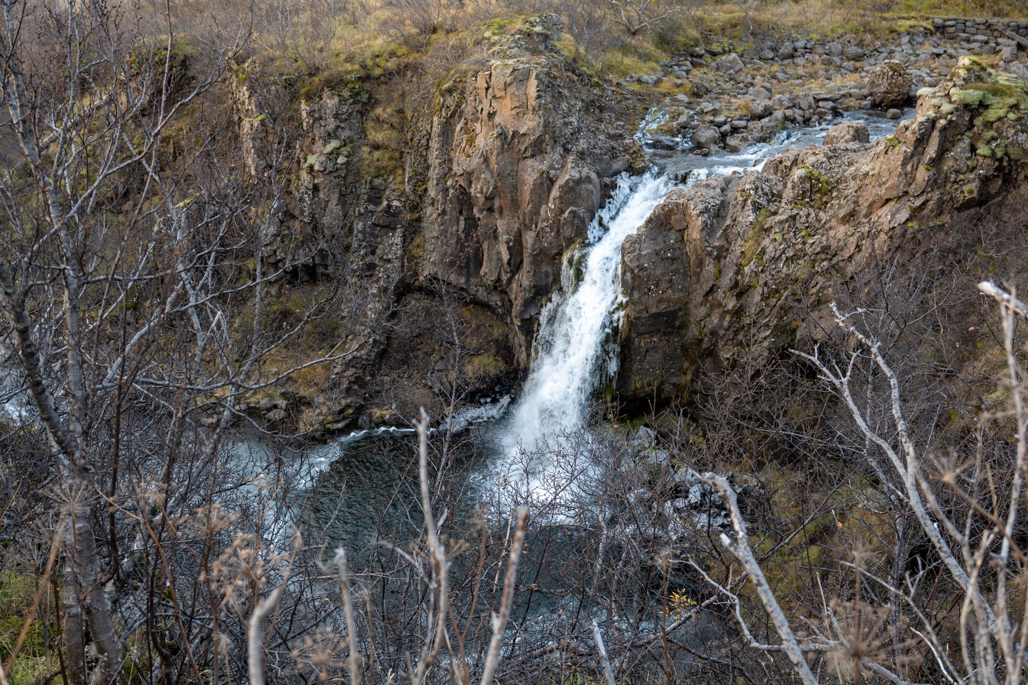 Auf dem Weg zum Svartifoss führt der Wanderweg direkt am Hundafoss vorbei. Er liegt etwas tiefer im Tal und wird oft nur kurz wahrgenommen, da der Fokus vieler Besucher auf dem Svartifoss liegt. Ein kurzer Halt lohnt sich dennoch, da sich der Wasserfall gut in die Umgebung einfügt und meist deutlich ruhiger ist.