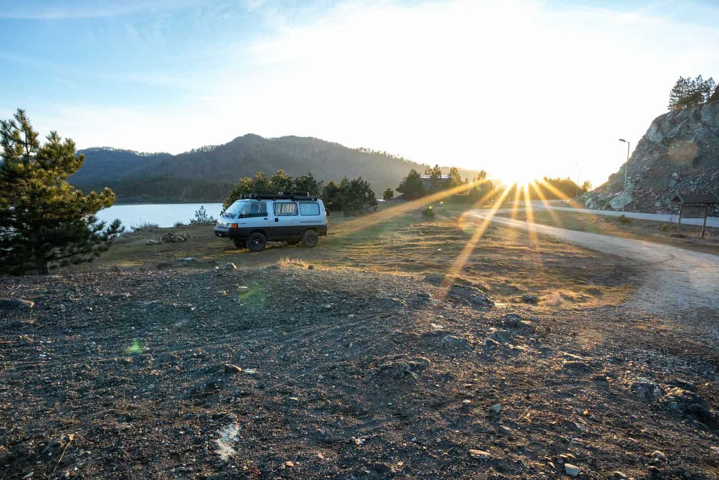 Im Winter ist der Stellplatz am Aoou See besonders ruhig, da nur wenige Camper hierherkommen. Das bietet Dir eine nahezu ungestörte Zeit in der Natur, allerdings kann es auch ziemlich kalt werden. Gerade in den höher gelegenen Regionen, wie hier am Techniti Limni Aoou See, sinken die Temperaturen oft weit unter den Gefrierpunkt, und es kann zu starkem Frost oder intensiven Schneefällen kommen. Wenn Du am Stellplatz am Aoou See im Winter campen möchtest, solltest Du deshalb gut vorbereitet sein und auf ausreichend warme Kleidung, isolierte Schlafausrüstung sowie wetterfestes Equipment achten. Der Anblick der schneebedeckten Berge und der zugefrorenen, stillen Landschaft belohnt Dich jedoch mit einer einzigartigen Atmosphäre, die Du kaum an anderen Orten finden wirst. Auch die klare, kalte Winterluft, die frische Stille und der funkelnde Sternenhimmel in dieser Jahreszeit sind besonders beeindruckend und unvergesslich.