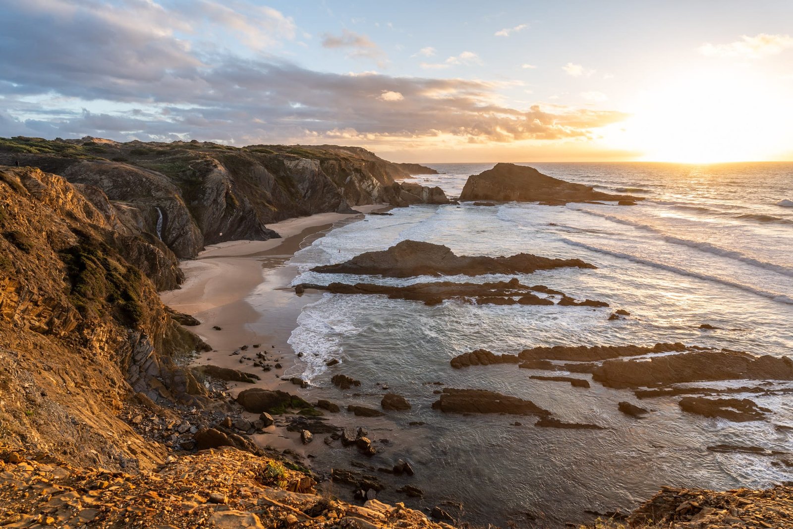 👉 Tipp: Nur wenige Minuten südlich liegt der Praia do Alteirinhos – ein Strand, der bei Sonnenuntergang mit seinen Felsen und der ruhigen Atmosphäre ein absolutes Highlight ist.