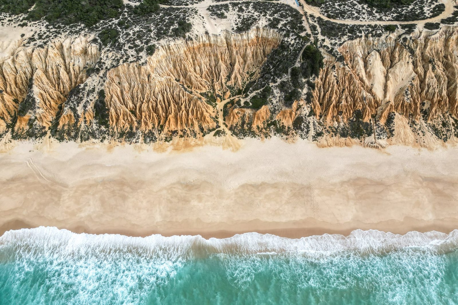 Die Praia da Falésia gehört zu den bekanntesten Küstenabschnitten an der Algarve und beeindruckt vor allem durch ihre rötlich leuchtenden Klippen. Über mehrere Kilometer zieht sich ein breiter Sandstreifen entlang der Felsen, die je nach Tageslicht in unterschiedlichen Farbtönen schimmern. Besonders in den Abendstunden ergibt sich ein eindrucksvolles Farbspiel aus Orange, Rot und Gold.