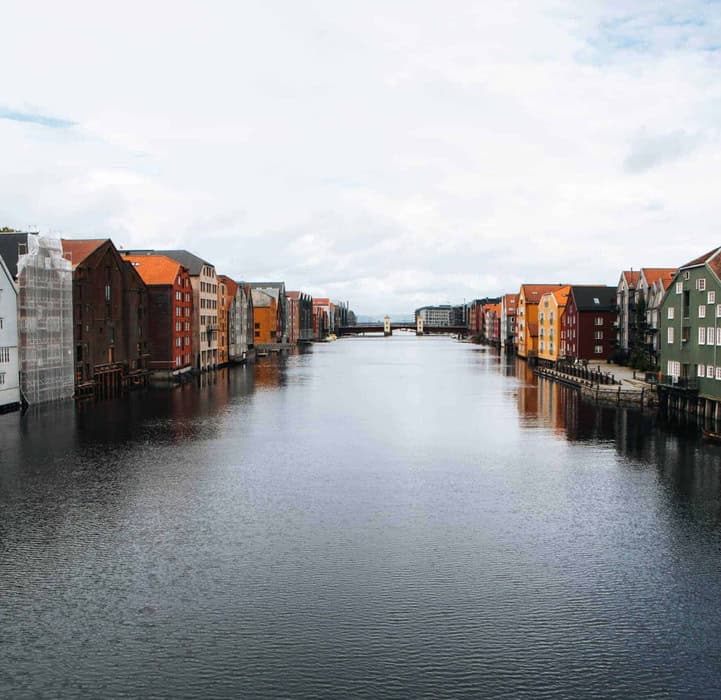 Neben dem Nidarosdom lohnt sich auch ein Besuch der alten Stadtbrücke „Gamle Bybro“ mit ihren charakteristischen roten Toren, die als „Tor zum Glück“ bekannt sind. Sie führt ins historische Viertel Bakklandet, wo dich bunte Holzhäuser, gemütliche Cafés und kleine Boutiquen erwarten. Besonders im Sommer ist dieses Viertel ein lebendiger Treffpunkt für Einheimische und Touristen.