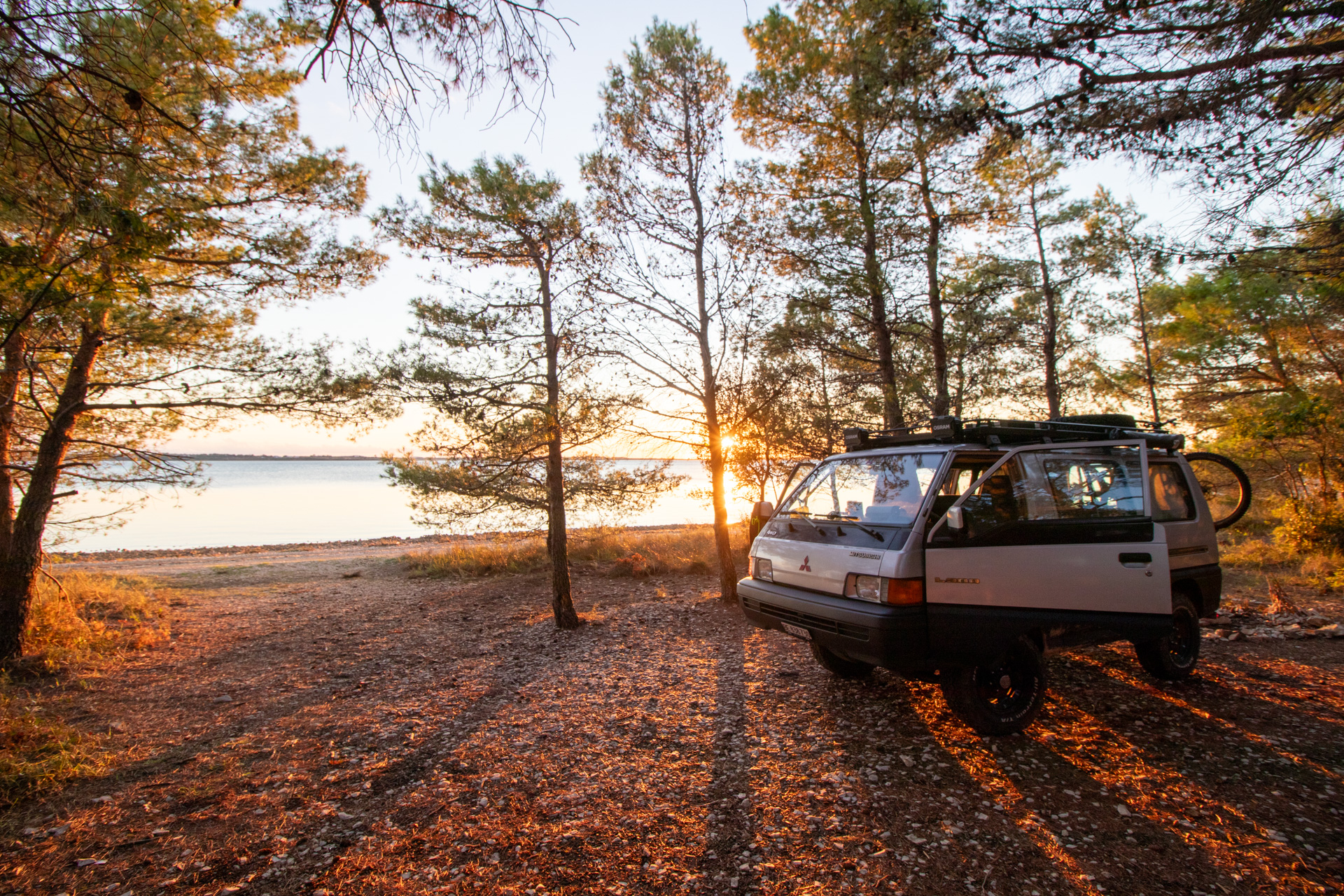 Auf der Dobra Punta gibt es zahlreiche Wildcamping Stellplätze direkt in den Pinienwälder mit Meerblick, welche auch für ein paar Tage Aufenthalt einladen. Auf dem Roadtrip durch Kroatien waren dies die schönsten und ruhigsten Stellplätze und sind ein echter Geheimtipp, obwohl der Platz mittlerweile unter dem Campern bekannt und beliebt ist.